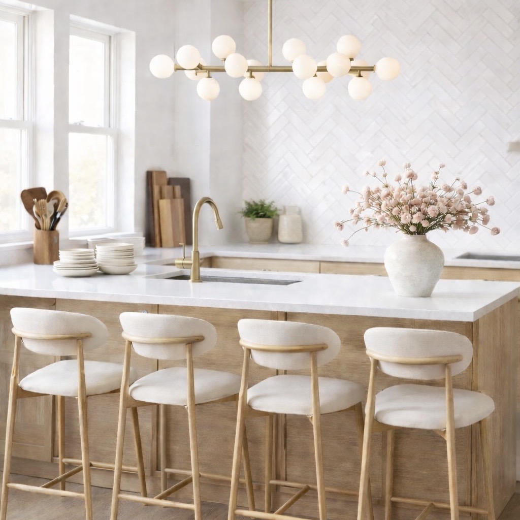 There is just something about a bright and airy kitchen that instantly lifts your mood and this setup has truly been a must have for me! I started by adding new kitchen barstools and it completely changed how the space feels. It made my island look more styled and inviting and now it is where I sit every single morning with my coffee! I also added these book shaped cutting boards and they are such a fun detail that makes the kitchen feel more curated without trying too hard.